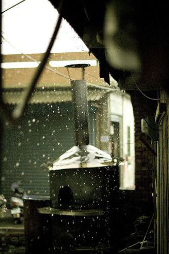 套上拖鞋拜訪延路的水窪,卻沒預見的在超市買完東西後下起大雨來,